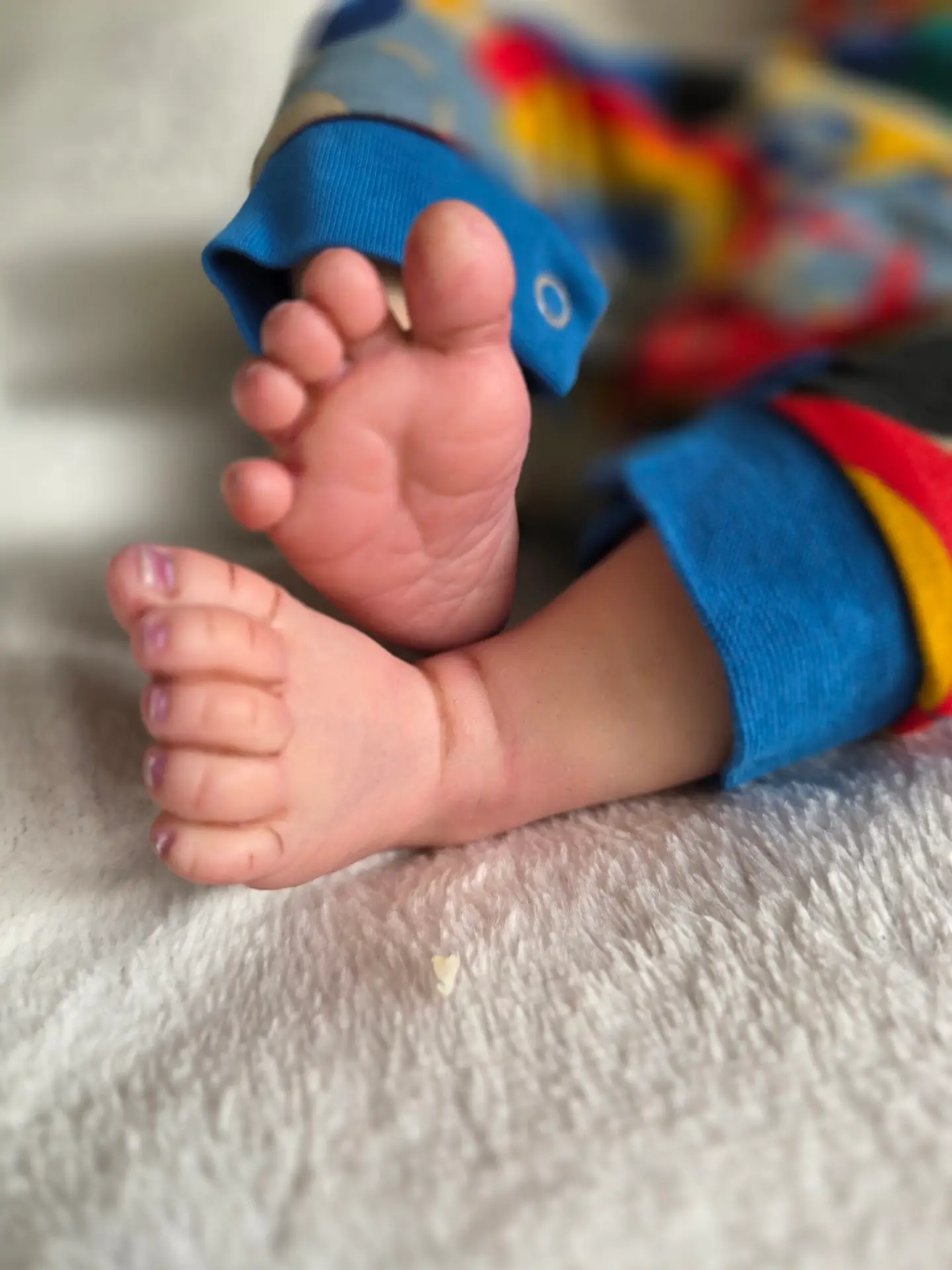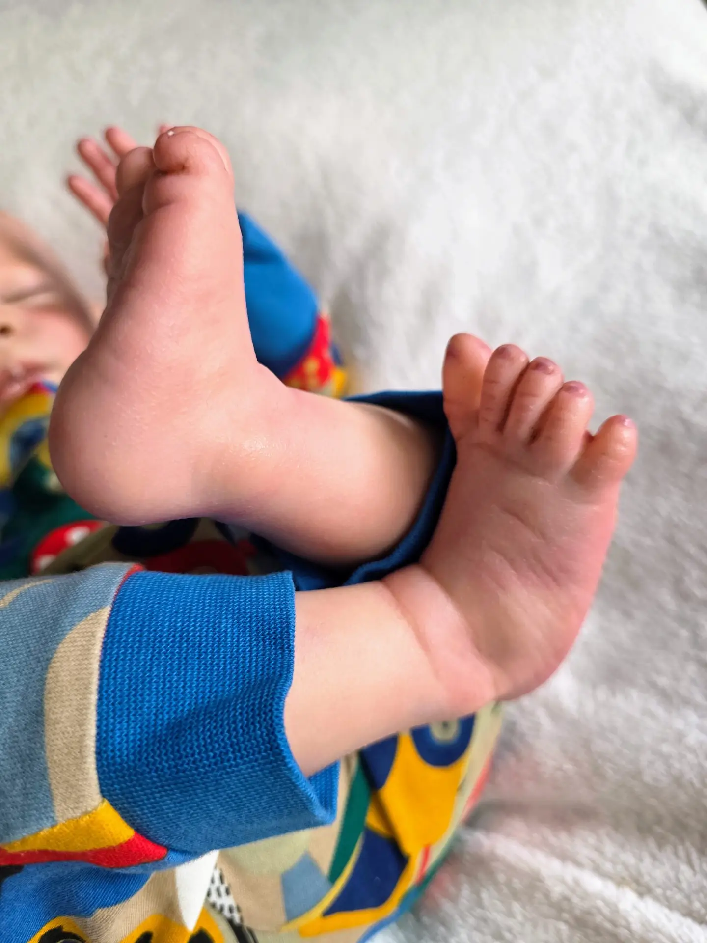 Hand-painted by Aya of Moon & Milk Dolls with delicate veining, capillaries, a soft milk blister, and tiny crescent moons on each nail, Dominic comes with his COA, magnetic dummy, a bright construction sleepsuit, and a spare sleeper.
