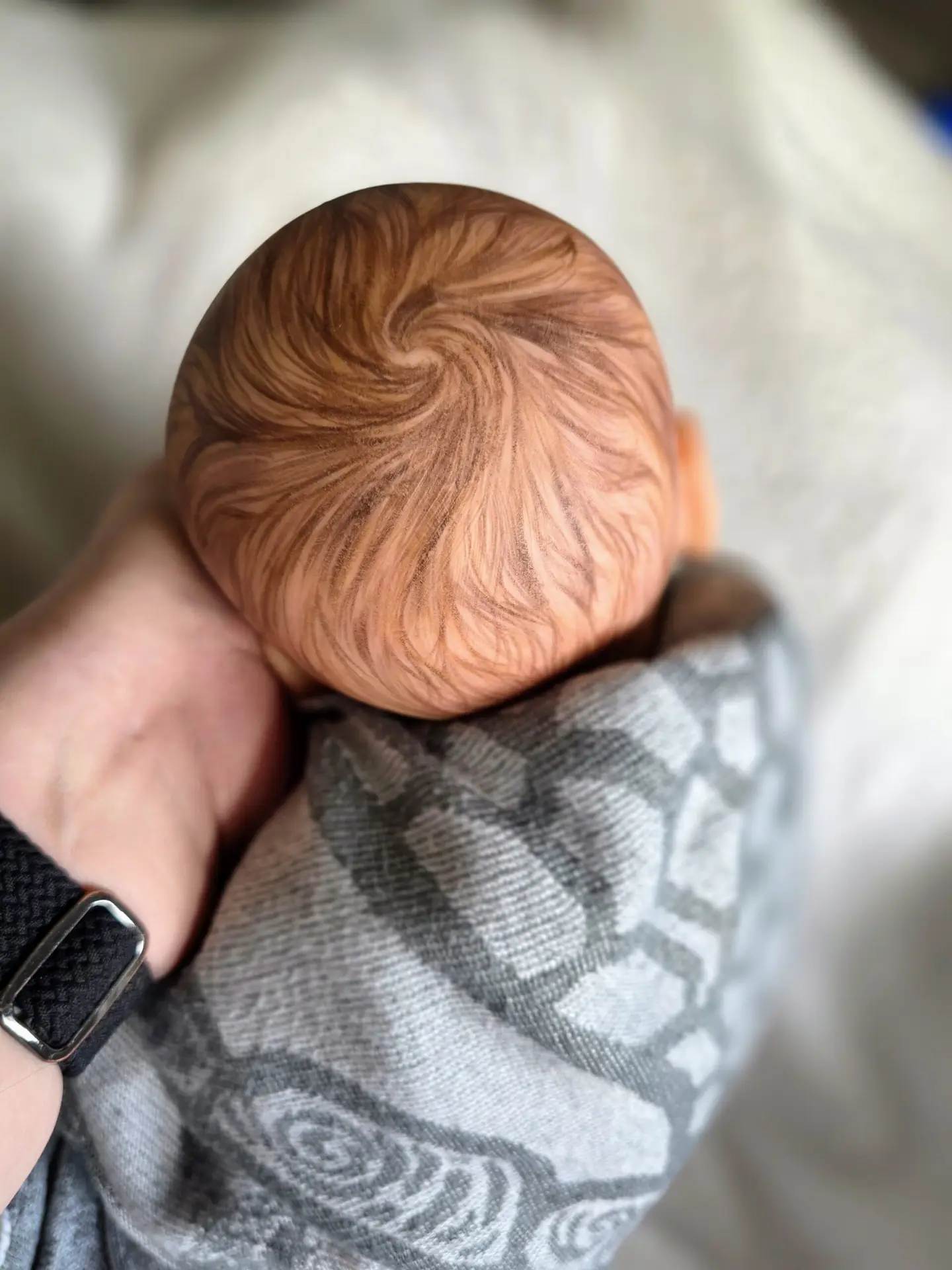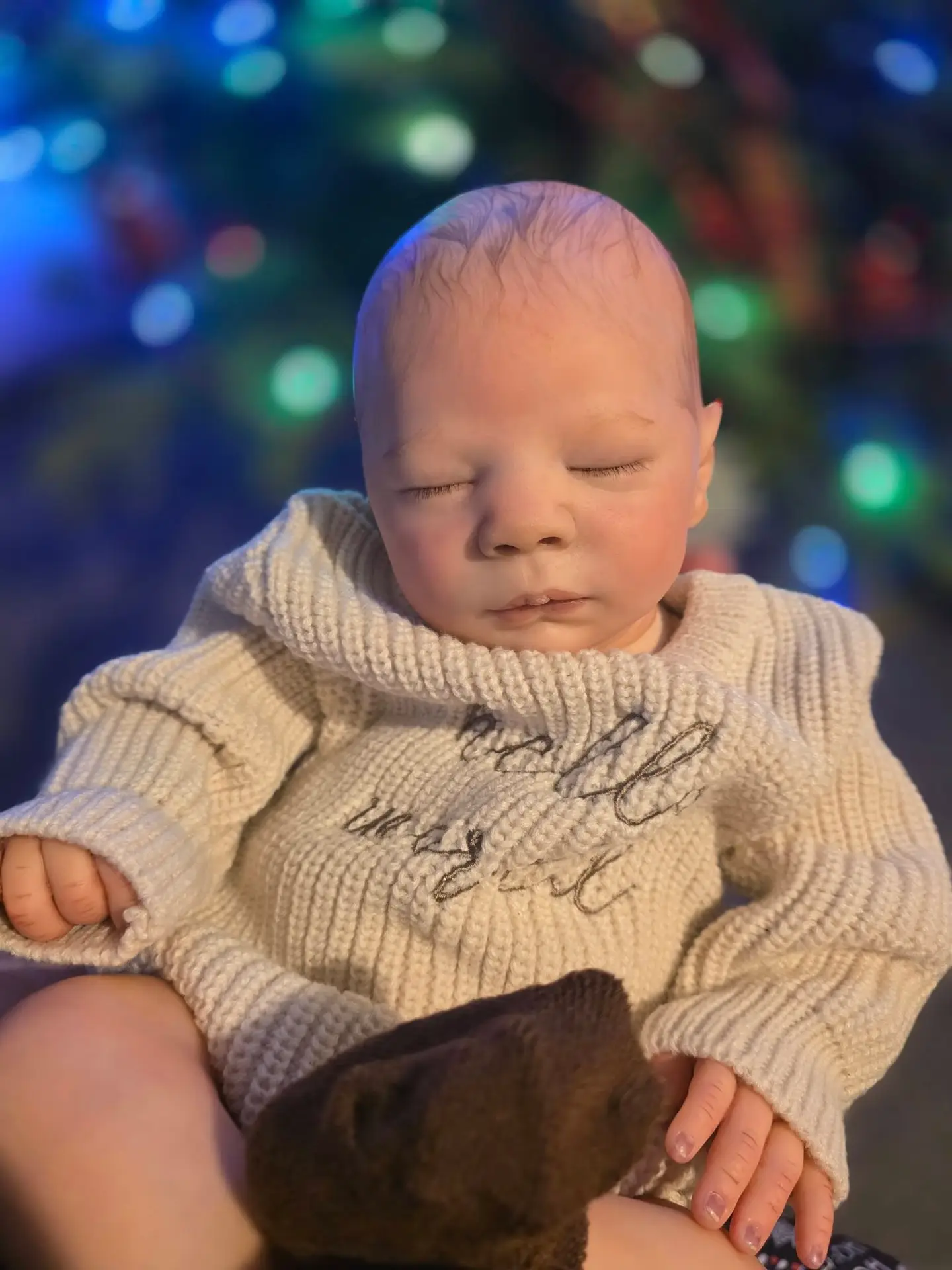 This peaceful newborn has been lovingly brought to life by Aya of Moon & Milk Dolls — painted in natural newborn tones, sealed for durability, and weighted to feel just like a real baby. Every ounce has been carefully placed for balance and realism, allowing his head and limbs to move gently when held — floppy, comforting, and true to life.
