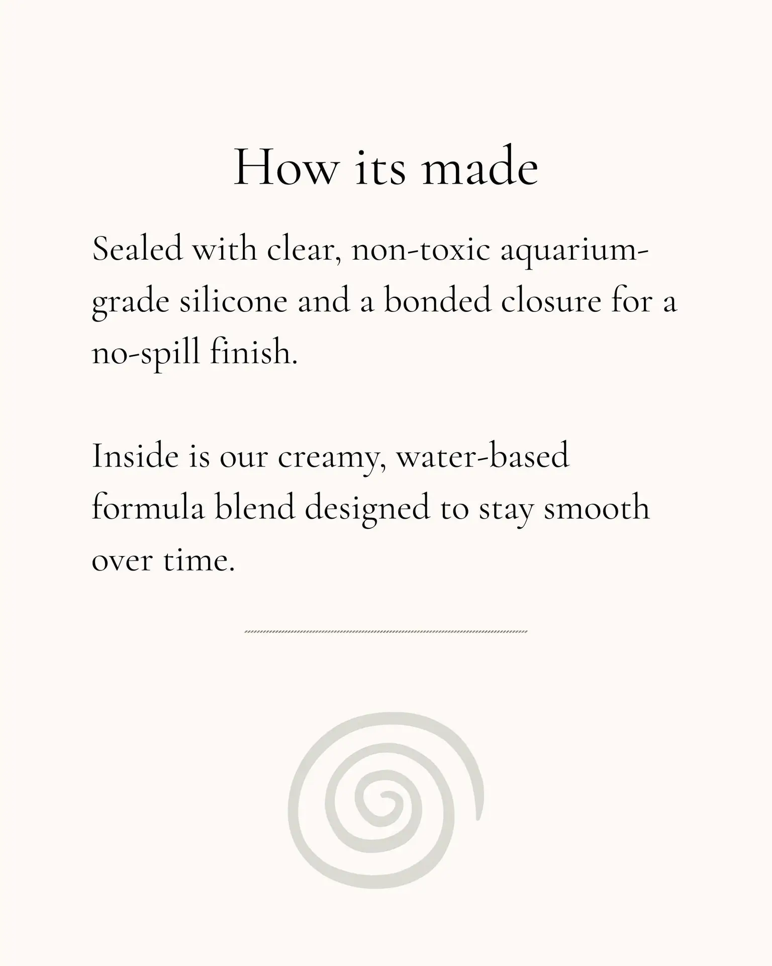 Inside is our studio-crafted, water-based formula blend designed to stay smooth and colour-stable over time.